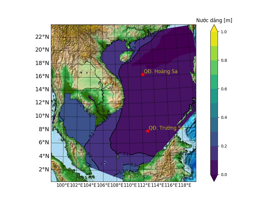 Dự báo độ cao nước dâng do bão và gió mùa tại ven biển Việt Nam